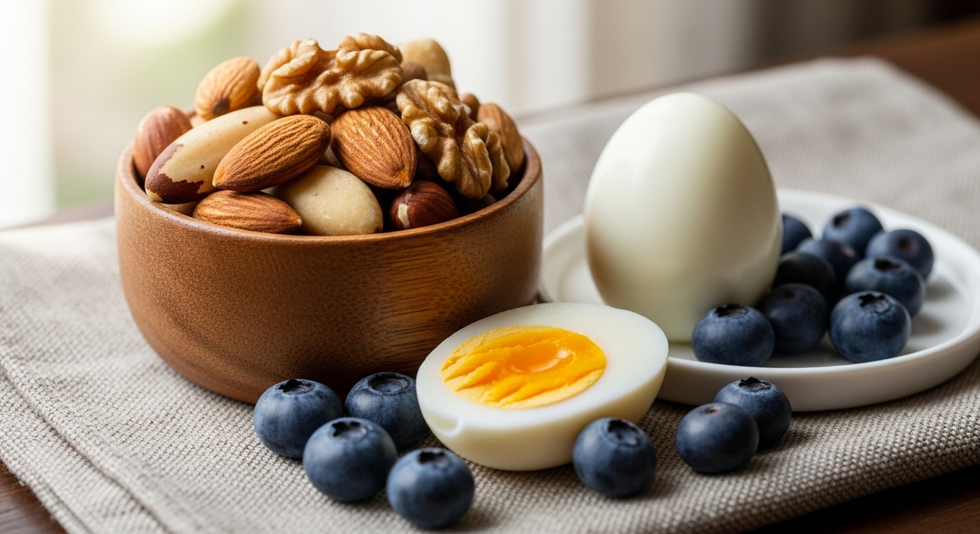 4. 견과류 (아몬드, 호두) 🌰 - 아연, 셀레늄, 비타민 E